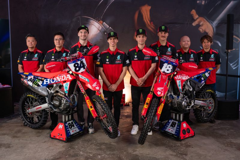 - Host: Thank you very much for your time. And as you may have seen on the jerseys we have another announcement to make regarding another new sponsor for Honda HRC. So it’s with great pleasure that we can announce that Monster Energy are joining Honda HRC PETRONAS for the 2026 Motocross World Championships.