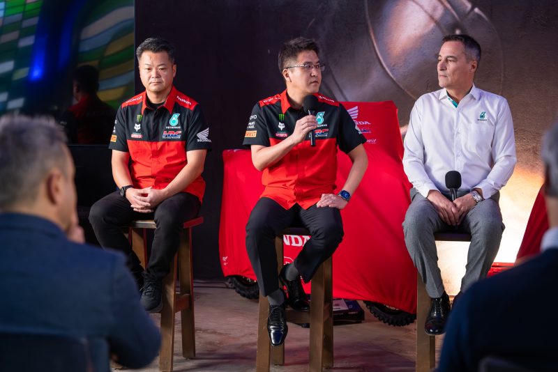 - Host: Thank you very much. We also have Taichi Honda who’s a General Manager of Race Operations Management Office, Mitsuharu Funase, General Manager of Race Planning and Operation Office, Giacomo Gariboldi, Team Manager, and Marcus Pereira de Freitas, General Manager. Mr. Funase, what does this mean for Honda HRC to be able to get a company of such stature like PETRONAS Lubricants International?