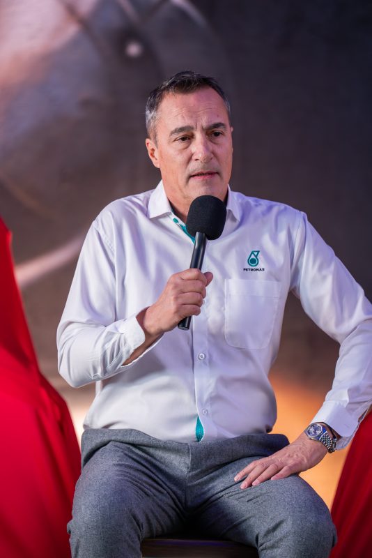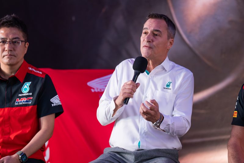 - Host: Joining me on stage now is Alessandro Orsini from PETRONAS Lubricants International and he’s the Head of Group Marketing and Customer Excellence. Mr. Orsini, please tell us about how it came about that PETRONAS Lubricants International and Honda HRC got into this partnership and what it means for your company to be part of the Motocross World Championships now?