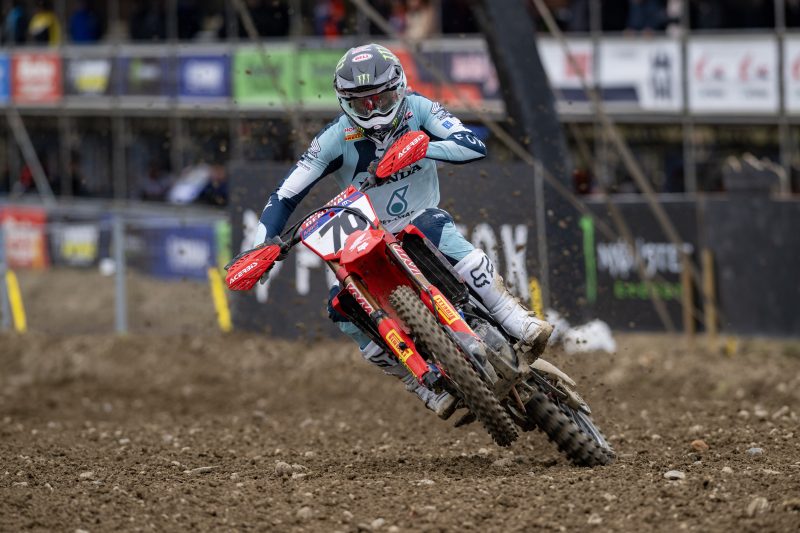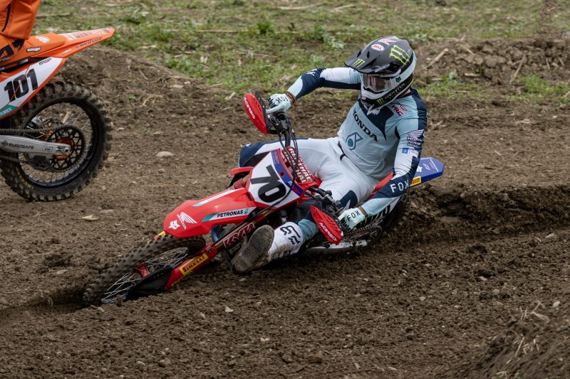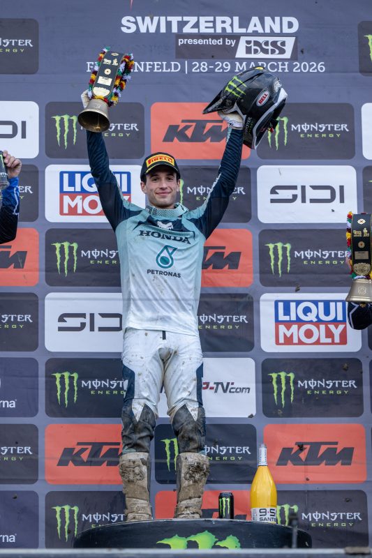 Honda HRC PETRONAS’s Tom Vialle won his first MXGP overall in just his third attempt, after storming through the field in the second moto to back-up his victory in the first moto. Starting from 18th gate-pick, the Honda CRF450RW rider powered away to lead the whole of race one, showing his speed on a tricky Frauenfeld track.